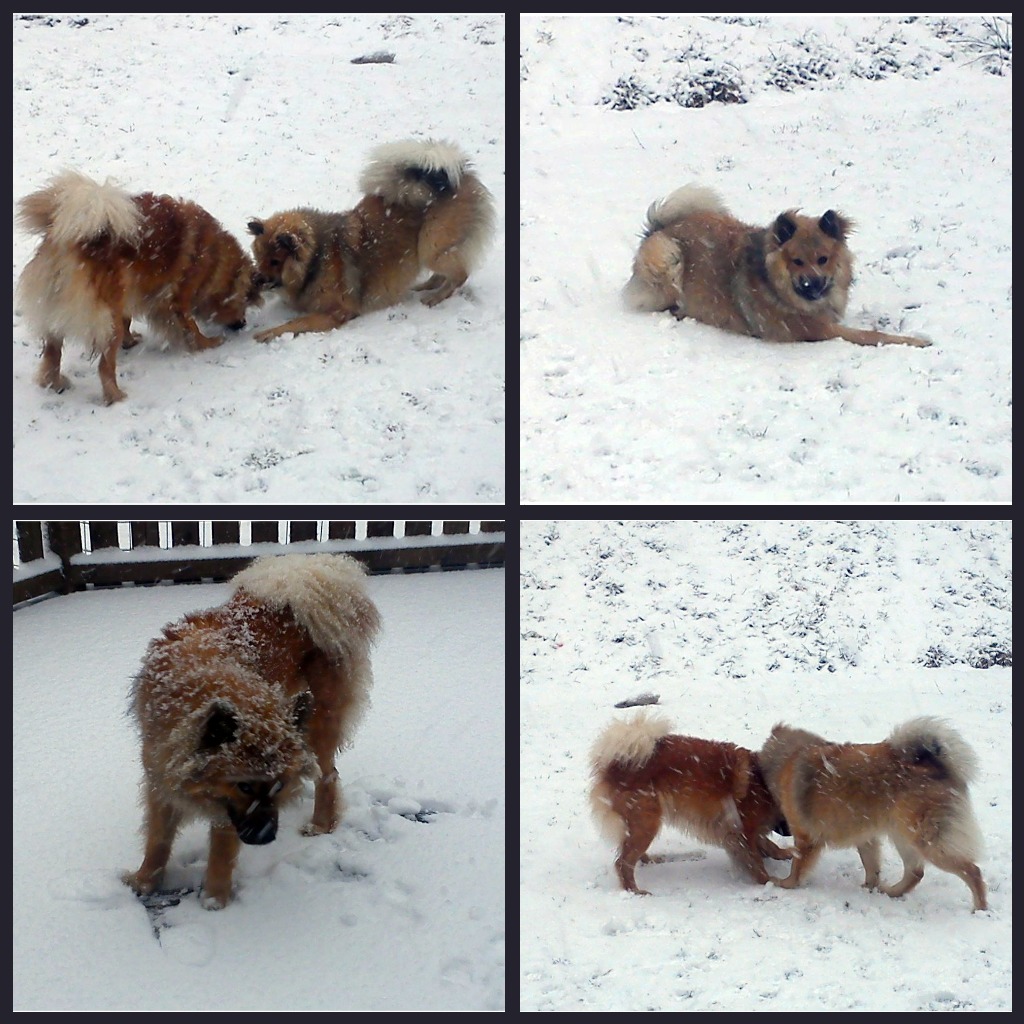 Tjejerna är väldigt nöjda med all snö och vill helst ha ännu mer tror jag. Helst vill dom vara ute hela tiden men när det gäller att skotta så lär man inte få någon hjälp av dom 😉