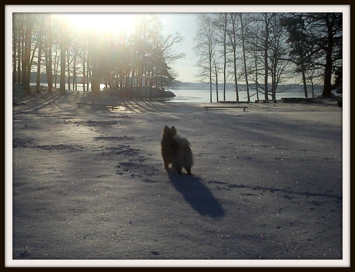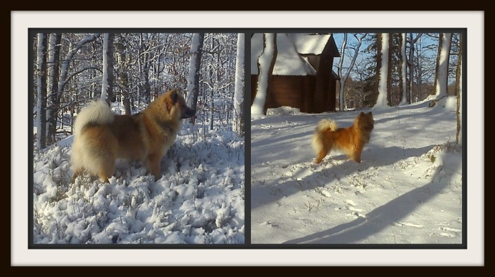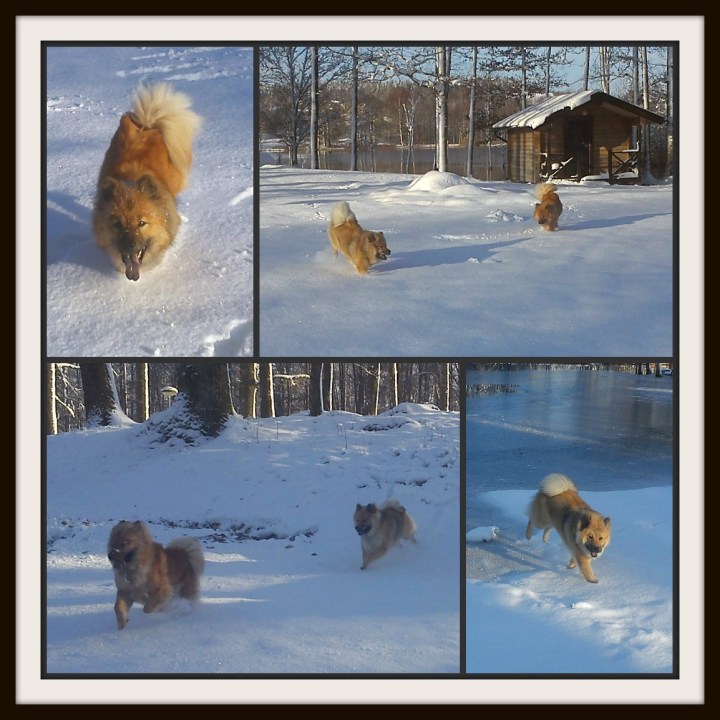 Ja det vill jag verkligen säga att dagens promenad innehöll. Att 15 cm nysnö kan göra två hundar så tokiga och så trötta ;). Att pulsa omkring i detta innebär en utmaning för både min och tjejernas kondition. Kanske inte så konstigt…..det är ju stor skillnad att gå på barmark gentemot att pulsa omkring i 15 cm snö ;).