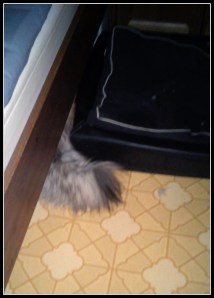 Nu blir det inte mer gjort denna dag och tjejerna verkar mer än nöjda. Vi hann inte mer än innanför dörren innan Tindra bestämde sig för att det var natten och försvann in under våran säng. Och detta var det enda som syntes av henne 😉