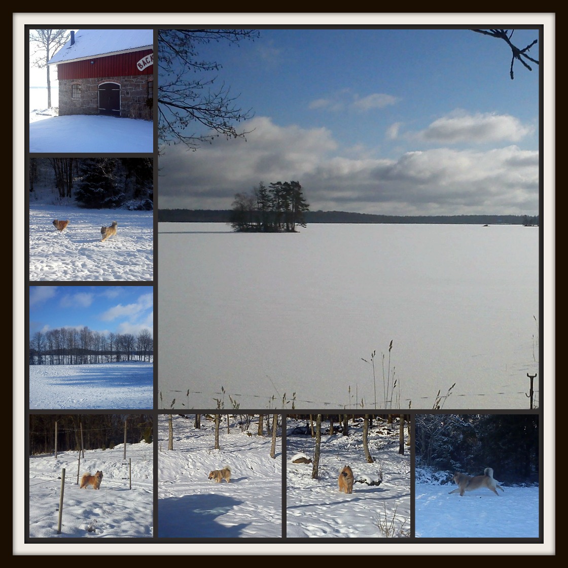Vilket fantastiskt väder vi haft idag! En underbar vinterdag med nysnö, vindstilla och strålande sol. Detta väder lockade till er tur till Backa Loge här i Kalv. Det är ett sommarcafé som ligger precis vid Fegensjön och är ett populärt turistmål på sommaren. Vi gick en promenad där medans tjejerna hade fullt upp att undersöka detta nya ställe 🙂
