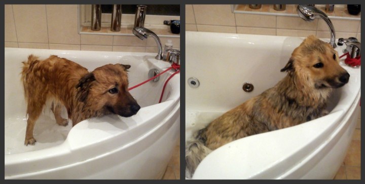 Ja det är inte annat än att man tycker synd om sina hundar när dom ser så otroligt lidande ut. På deras uttryck skulle man kunna tro att man utsätter dom för någon slag tortyr och det kanske dom tycker också…. vem vet. Men det är bara ett bad och inget annat 😉