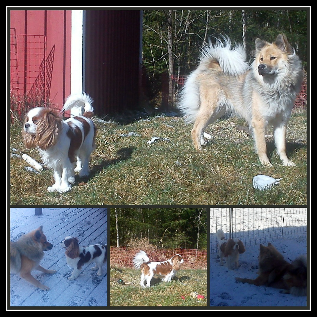 Idag tyckte Tindra att Brolle var betydligt roligare. Igår fräste hon mest på honom medan Zelda körde ignoreringsmetoden ;). Så när vi släppte ut dem i trädgården här på förmiddagen så gjorde Tindra sitt allra bästa för att bjuda in Brolle till lek :). Som ni ser så hade vi fått snö inatt men nu är är det i stort sett borta igen.