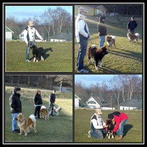 Ja så känner jag det emellanåt när det gäller Tindras ringträning. Men vi gör framsteg hela tiden, kanske inte jättestora steg men på rätt håll i allafall. Idag gick det riktigt bra men det är bara att konstatera att vi har en väldigt glad hund med driv i. Kanske lite för mycket driv för utställningsringarna ;). Fast det är inte helt fel att ha en glad hund i ringen heller bara det inte blir för mycket :). Träningen idag genomfördes på en gräsplan med en massa spännande dofter, allt för att utmana hundarna och dom skötte sig jättebra allihopa :). Vi var samma trogna skara som vanligt som kämpade på i blåst och kyla trots att solen lyste på oss. I lite över 1 timme stod vi ut innan vi gav upp och sökte värme i bilarna ;). Tack alla för en jättetrevlig träning som vanligt 🙂