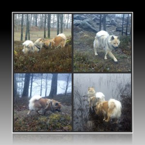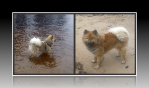 Nu är vi inkomna efter att ha tillbringat de senaste 2 timmarna ute i detta mindre trevliga vädret ( läs skitväder 😉 ). Fast efter 1 timma så slutade det faktiskt regna men det var lika disigt och grått ändå. Ja ja så är det ibland, bara att gilla läget :). Vår promenad började på stranden där det var fullt ös på tjejerna som vanligt 🙂