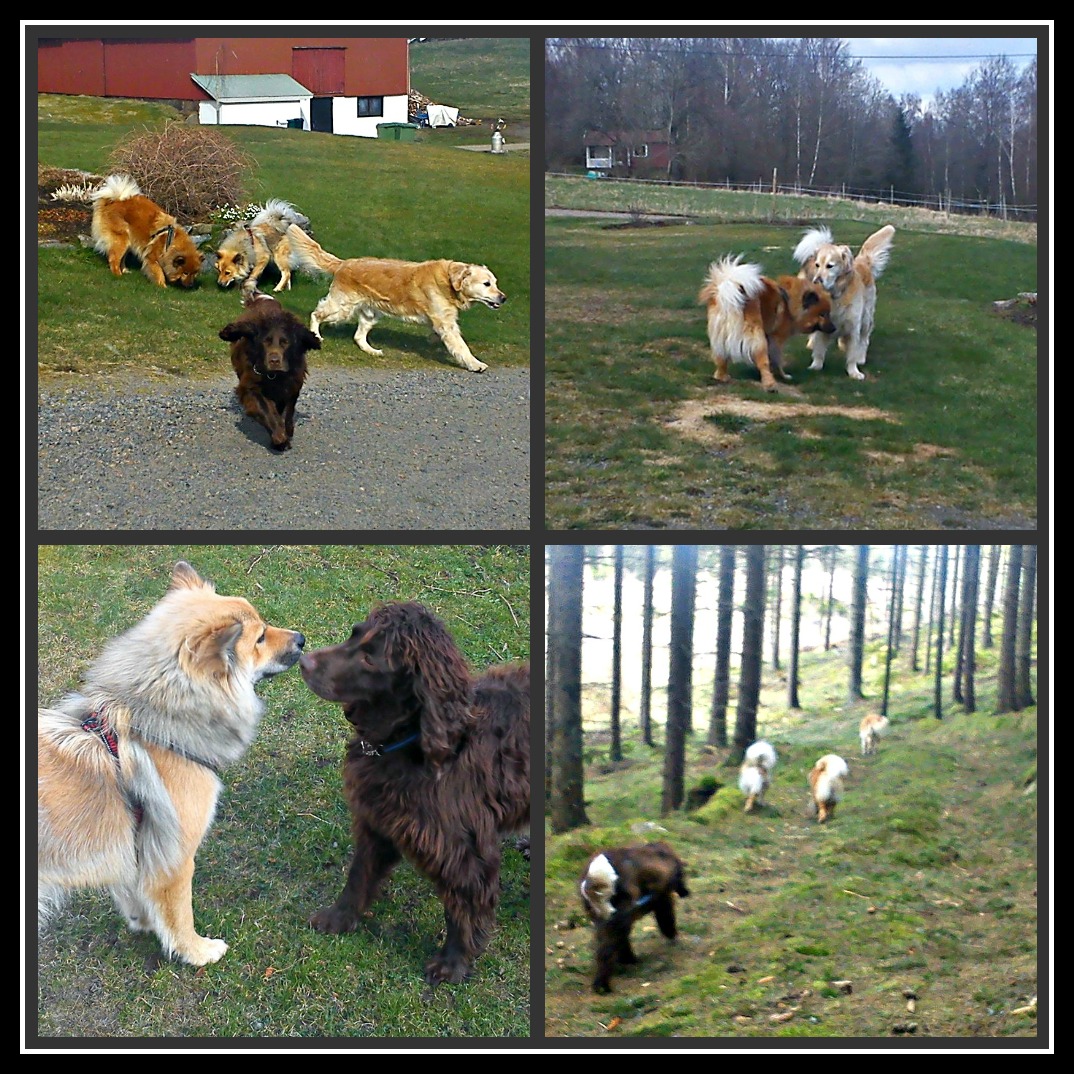 Till slut fick vi övertala hundarna till att gå vidare och efter en stund var vi hemma hos Gunilla igen. Trots att vi då hade varit ute i cirka 1 ½ timme så var det fortfarande fart på hundarna, tror ni dom sover gott nu eller? 😉 Tack Gunilla för en härlig promenad fylld med prat och skratt :). Det gör vi snart om igen hoppas jag :).