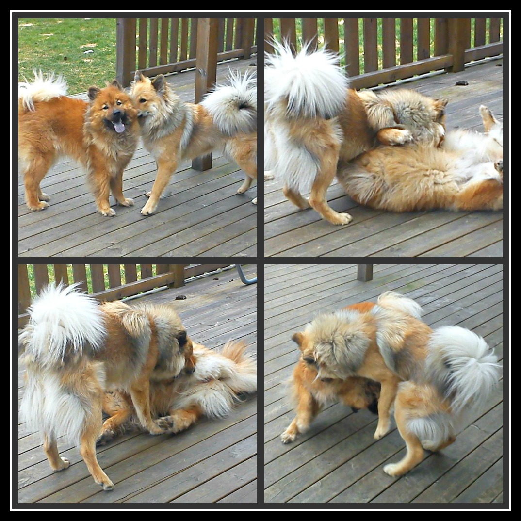 Vilken energi våra tjejer har! Trots en lång promenad innan idag så blev det bara en kort tupplur innan det var dags för nästa aktivitet. Den bestod av en rejäl lekstund ute på altanen. Men visst är dom härliga att titta på och framför allt är det så kul att se dom ha så roligt ihop 🙂
