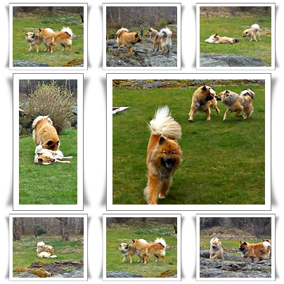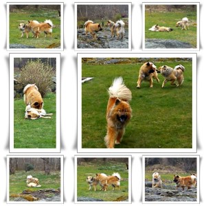 Ja det var hos dom Hasse och Zelda hade tillbringat dagen när jag och Tindra var på kurs. Dom behövde hjälp med lite bergsprängning inför sitt kommande husbygge och det är ju precis vad Hasse jobbar med :). Under tiden Hasse & Peter sprängde så fick Zelda vara med Pia och Linus och en viss Zacco som gjorde sitt allra bästa för att locka till lek. Men som den prinsessa Zelda är så går hon hellre omkring och luktar på blommorna ;). Så ni kan tänka er att Zacco blev glad när jag dök upp med en mycket leksugen Tindra :). Jisses så kul de hade tillsammans och det var fullt ös hela tiden 🙂