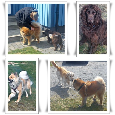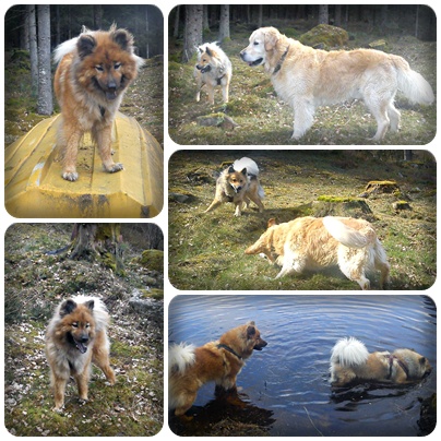 Efter ett tag kom ni fram till en liten sjö där vi slog oss ner en stund medan hundarna badade och busade. Tindra & Simson fick riktiga frispel och sprang så att gräset yrde medan Zelda & Scott körde mer med Ferdinand-stilen; att strosa omkring och bara njuta 🙂
