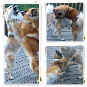 Annars så har solen strålat över oss även idag. Hela 21 ° när jag åkte hem från skolan vid 15-tiden så man kan verkligen inte klaga på det. Tjejerna har även idag tillbringat dagen i hundgården men har enligt grannen varit nöjda och glada med det :). För en liten stund sedan så har de haft sin obligatorisk lekstund ute på altanen 🙂