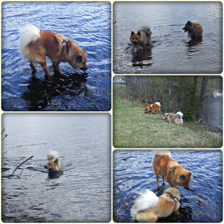 Nu anser till och med Zelda att det är en klart godkänd vattentemperatur för att bada eller rättare sagt att vada ;). Hon är inte någon större simmare utan vill helst vada omkring i vattnet, till skillnad från Tindra som med glädje gärna tar sig en simtur :). När vi väl var tillbaka vid bilen igen så var tjejerna rätt så trötta kan jag meddela och nu sover de gott här vid köksbordet :).