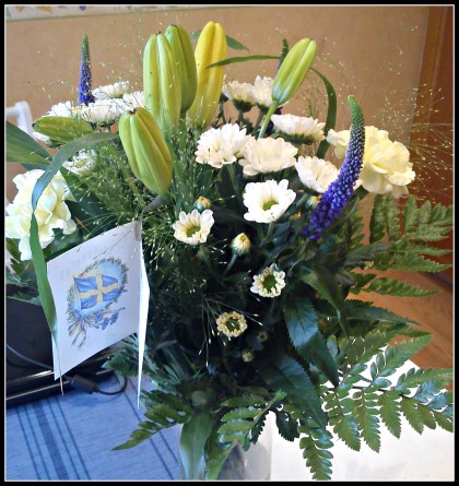 När jag hade varit hemma en stund så knackade det på dörren. Utanför stod grannen med ytterligare en blomma. Stort tack även till Anna-Lisa & Åke för den fina blomman 🙂