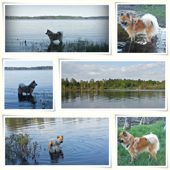 Idag så har vi minsann haft två premiärer :). Den ena var att sitta ute på altanen och äta grillat och den andra var kvällsbad för tjejerna. Det är ju inte tal om några långa raska promenader nu när det är så varmt utan en lugn runda som avslutas med ett bad i sjön är ju helt perfekt :). Och sen att där är otroligt vackert nu i kvällsolen gör ju inte saken sämre precis 😉