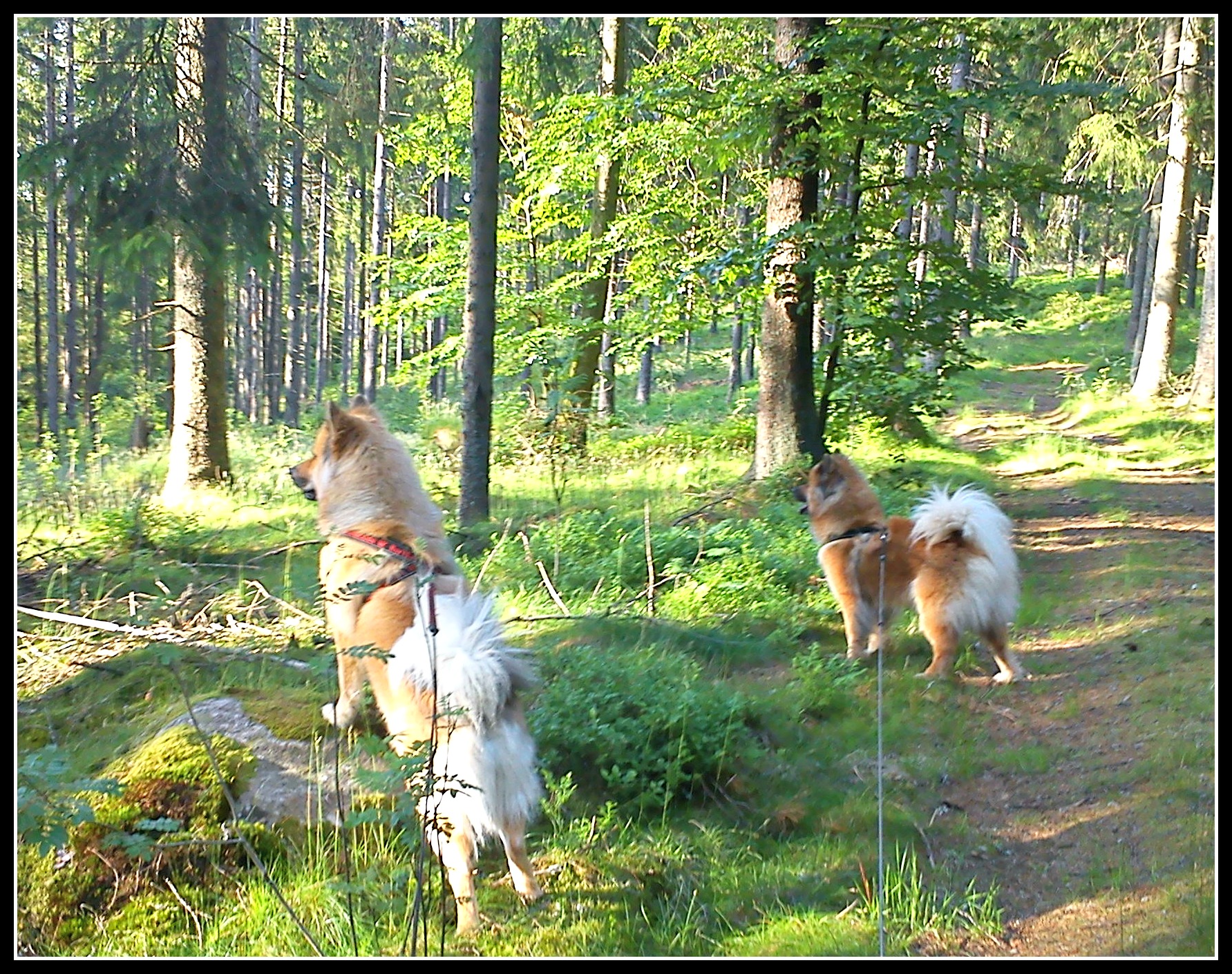 Efter en lång arbetsdag har jag nu slagit mig ner på köksstolen och pustar ut. Tjejerna har fått sin kvällspromenad och ikväll fick vi sällskap av kvällssolen. Det märks på tjejerna att det vimlar av vilt i skogen, mycket av deras tid går ut på att spana och vädra i luften 🙂
