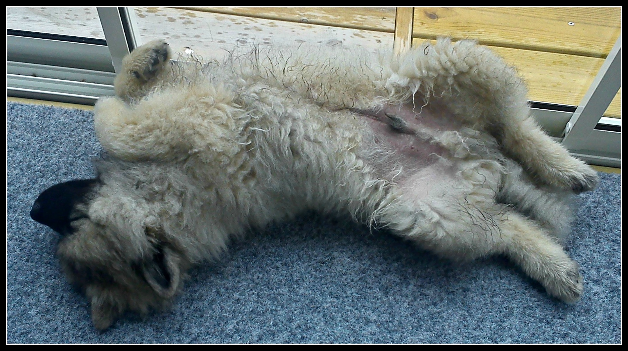 Här hemma hade Kim & Filip haft en kanonkväll och även hundarna verkade vara nöjda :). Brolle hade sovit gott i Tindras urvuxna hundbädd hela natten medan tjejerna höll sig på andra sidan sängen. Tur att vi har tre hundsängar sedan innan så blir det ingen konkurrens att tala om ;). Nu har jag en sovande Brolle liggandes med huvudet på bordet och resten av kroppen i mitt knä, ja ja alla sätt är ju bra utom dom dåliga ;).