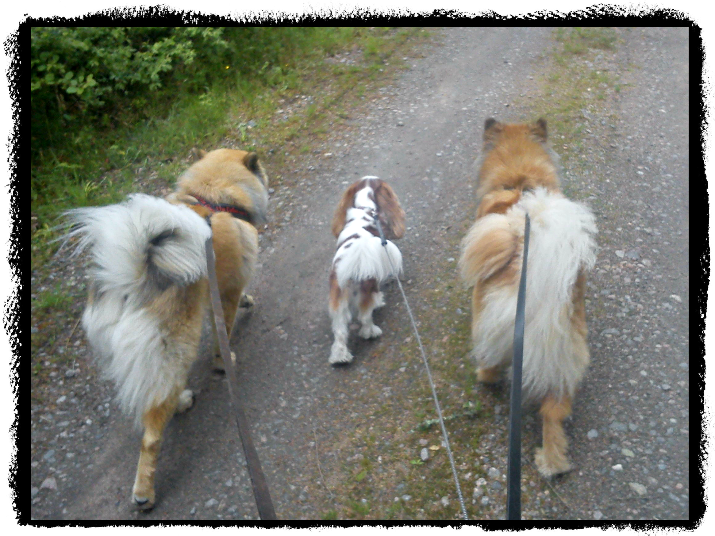 Då så var promenaden avklarad och alla verkar vara nöjda och glada :). Vi gick en runda i skogen och jag måste säga att Brolle börjar bete sig som tuppen i hönsgården eller vad tror ni? 😉