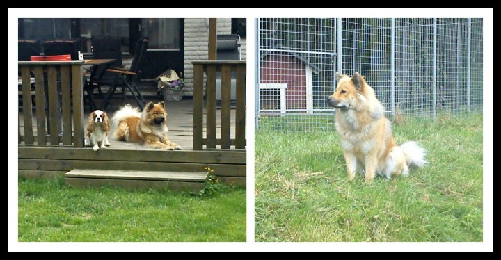 När vi kom hem så gick jag ut i trädgården där Hasse höll på att röja runt lite med att ta ner buskar och sånt. Jag fick också hyfsat till lite med sekatören här och var. Under tiden så hade hundarna stenkoll på vad vi höll på med 🙂