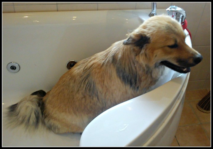 När det gäller Zelda så är ett bad inte att tänka på i nuläget. Det räcker nästan att man tittar på henne så ramlar pälsen av ;). Men än så länge mest på bakbenen så hon ser fortfarande rätt okej ut. Så om ni träffar på oss nu i helgen så gäller följande när det kommer till Zelda; se men INTE röra ;).