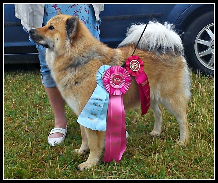 Efter att alla hanar hade visats och där Zacco tog sitt andra cert, stort grattis igen Anette & Lars :), så var det då dags för tikarna att äntra ringen. Tindra var lika cool som vanligt och var helt underbar i ringen och detta resulterade i att hon vann juniorklassen och fick ett Ck. Sen var det en stunds väntan innan det var dags för bästa tik-klass. Tindra fortsatte att briljera och blev andra bästa tik med ett reservcert 🙂 :). Så vi har återigen haft en dag med toppenresultat och jag har lite svårt att smälta att det går så bra nu. Men så länge som vi har tränat och kämpat så är det otroligt roligt att det nu betalar sig :). Vill ni läsa Tindras fina kritik så ligger den under hennes reslutat på hemsidan som vanligt.