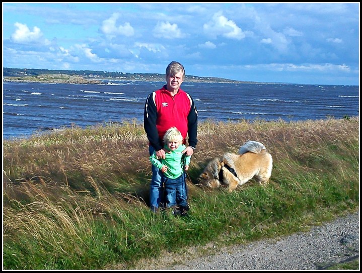 Halvvägs igenom promenaden lyckades jag få till detta fina kort på Hasse & Noah, Tindra ville inte medverka lika bra ;).