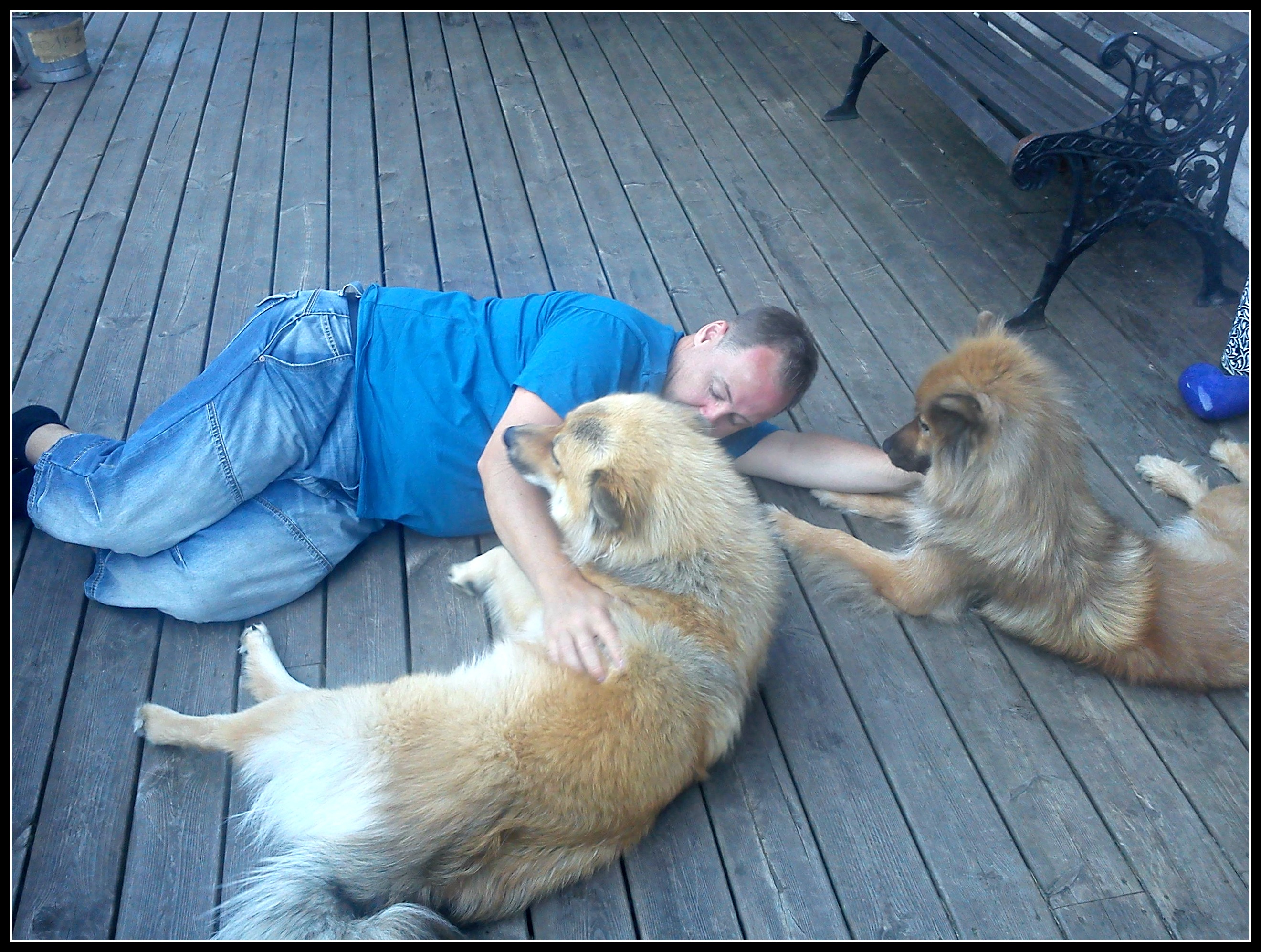 Peter har en mysstund ihop med ”köttbullen” som han alltid kallade Tindra som valp och även Zelda höll sig framme 🙂