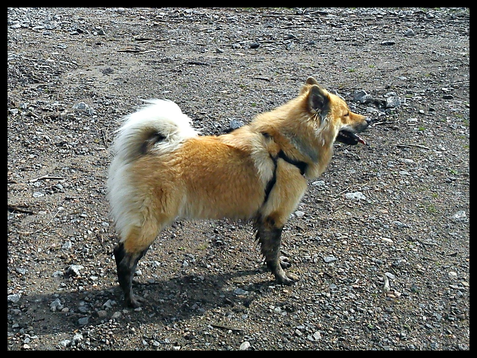 Det är ju tur att jag inte hunnit bada henne än inför utställningen på söndag för det lär behövas efter detta eller vad tror ni? Visst har man hört talas om att lerbad är bra för hyn med ändå ;).