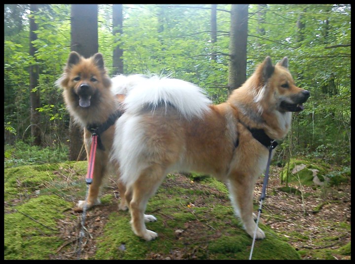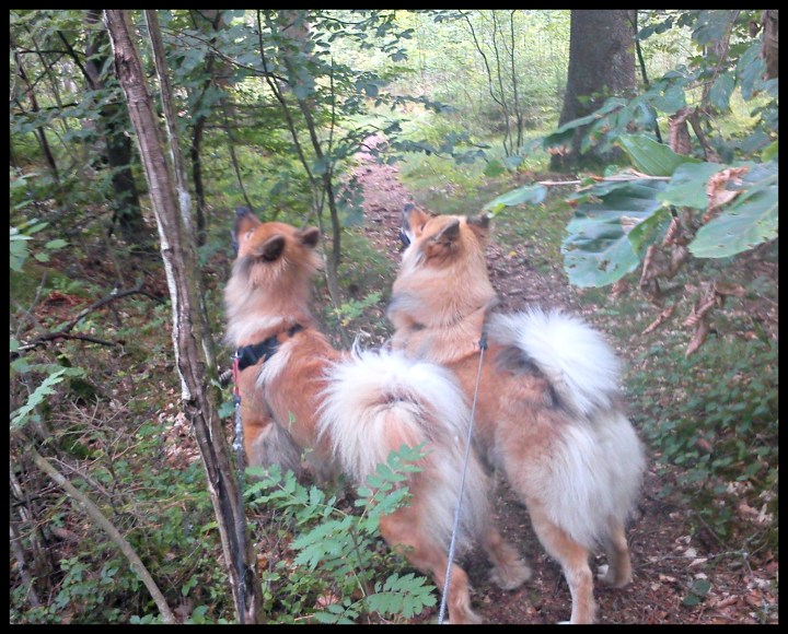 Ja det var mitt motto idag ute i skogen. Varför chansa och släppa tjejerna lösa när risken då är väldigt stor att Tindra hittar ett dike eller nåt sånt att bada i. Det hade ju inneburit ett bad ikväll igen och det står inte precis på min önskelista :). Så därför var det koppel på idag och tjejerna tog det hela med ro 🙂