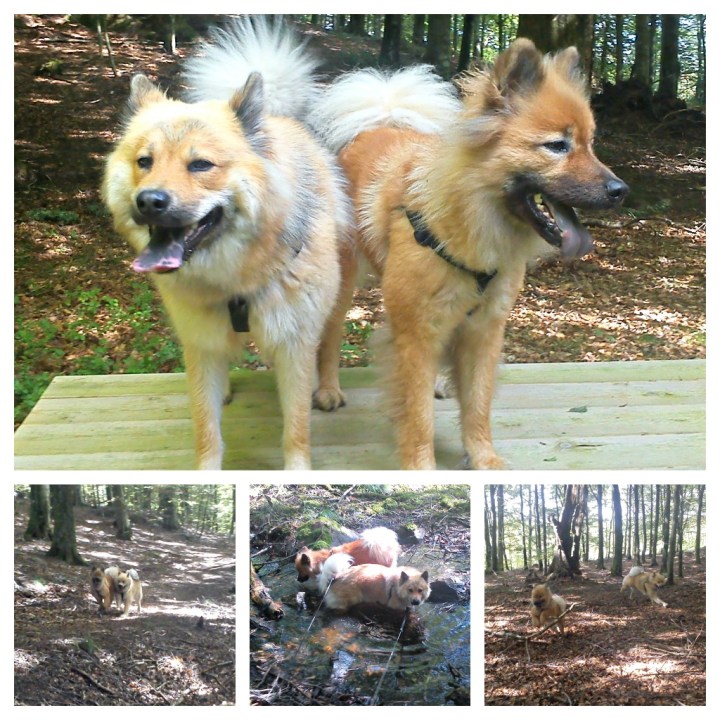 I bokskogen fick dom springa lösa en stund och då blev det minsann fullt ös. Upp och ner för backarna och såklart ett litet dopp däremellan. Det var inte lätt att övertala dom till lite posering på bordet men med lite hjälp av godis brukar det mesta lösa sig 😉