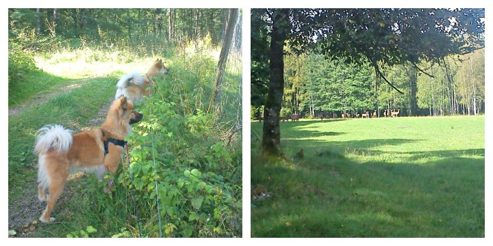 Då var promenaden avklarad och rundan gick idag runt hjorthägnet och genom bokskogen ”Kronan”. Det var varmare ute än vad jag trodde innan vi gav oss av så både jag och tjejerna blev rejält varma. Vi fick se hela flocken med hjortar lite på avstånd och det är spännande tycker tjejerna 🙂