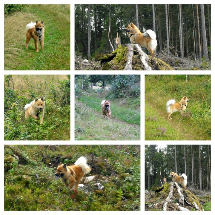 Då var vi hemkomna efter en rejäl runda i skogen. Kollade även efter kantareller men hittade inte några mängder idag men lite blev det allt :). Nåt som det däremot fanns gott om var dessa äckliga ”älgalöss” som älskar att sätta sig i hårbotten och vägra släppa taget :(. En klen tröst är väl att dom inte bits iallafall ;). Tjejerna hade återhämtat sig efter utställningen igår och for omkring över stock och sten som aldrig förr 🙂