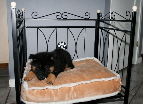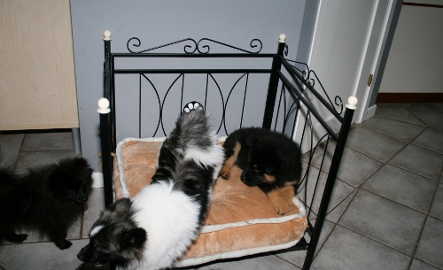 Vår lilla Jill verkar vara en tjej med skinn på näsan och som vet vart skåpet ska stå ;). Det bevisade hon idag när hon körde undan stackars Nosa och ensam la beslag på hundsängen :). Det är kanske tur att tjejerna här inte vet vad som väntar 😉
