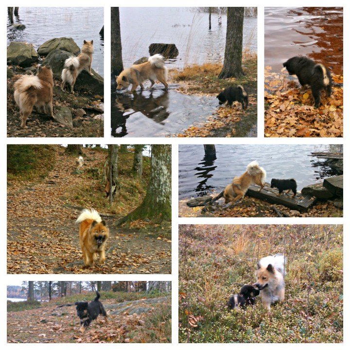 Efter ett tag så lyckades jag få några foton på dom ihop, vilket inte är det lättaste precis när Jill helst hänger med mig, vilket jag absolut inte klagar på :). De stora tjejerna höll som vanligt på med ekorr-spaning och musjakt, att det kan vara så roligt?? Däremellan blev det lite nosarbete i form av godisgömmor och såklart hann Tindra med att bada också, vad annars? ;).
