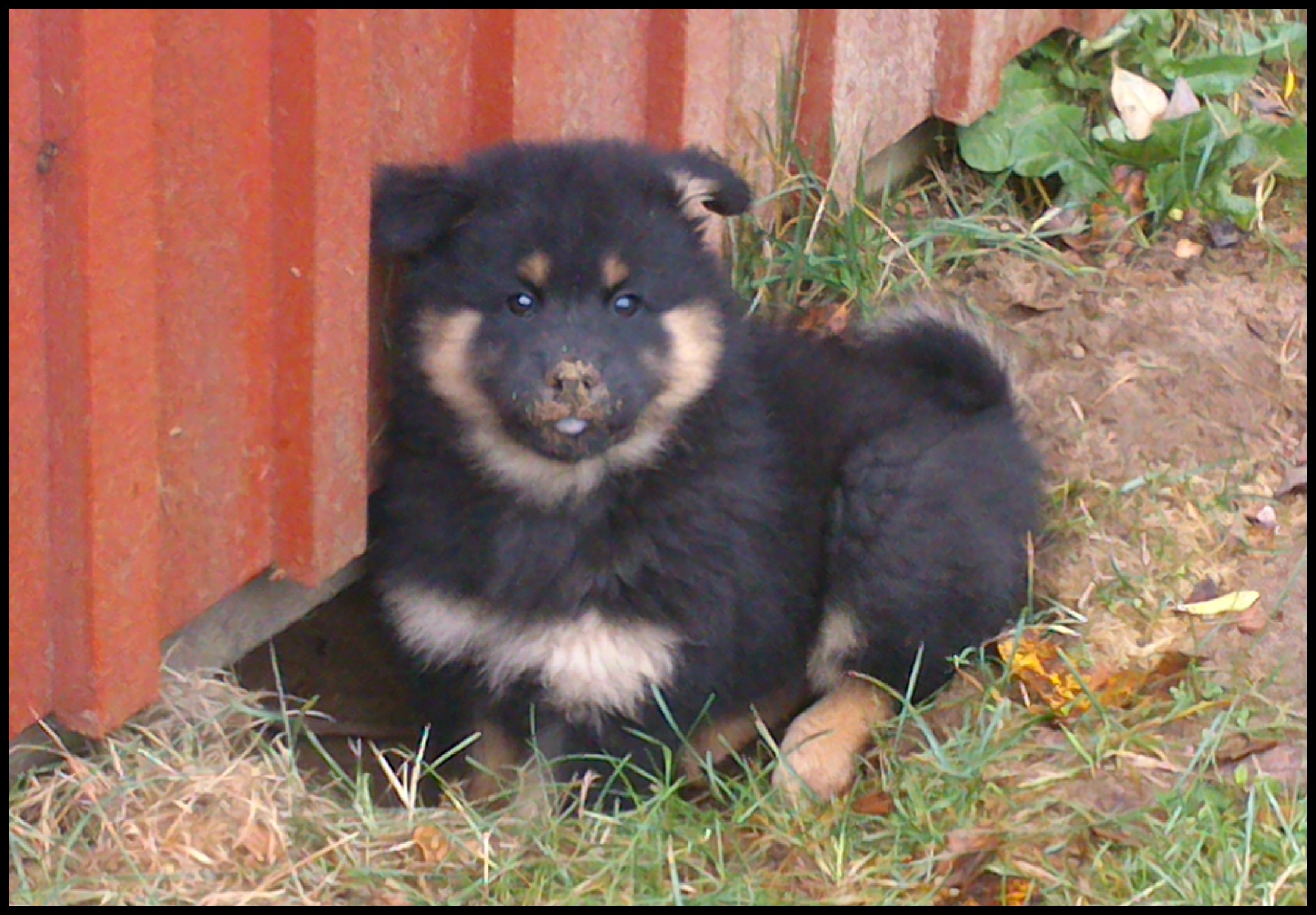 Lite utforskande av hundgården fick det också bli idag. Med lite hjälp över kanten in så var det himla kul att nosa runt där ett tag. Att hundkojan rymmer minst 2 hundar har blivit bevisat men nummer ett var att gömma sig för Tindra under plattformen 🙂