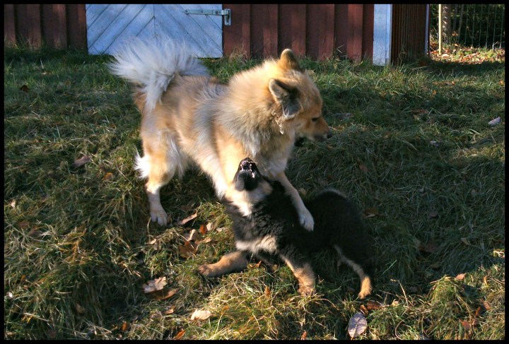 ..ja inte verkar de tröttna på denna lek i första taget, snarare tvärtom. Vi får till och med sätta lite gränser för dem nu, en liten valp förstår ju inte alltid sitt bästa och behöver faktiskt vila mellan varven med :).