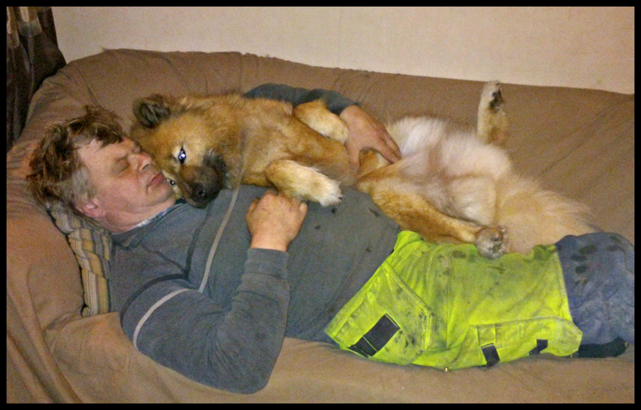 Zelda tinar upp mer och mer. Fick mig precis ett gott skratt när Jill kom farande i fullt ös och i farten hoppar över Zelda som ligger i godan ro på golvet. Zelda såg riktigt chockad ut ;). Men det som är allra bäst i Zeldas värld är riktigt hussemys. Inte nog med att hon blir kliad på de allra bästa ställena, hon är också helt utom räckhåll för det lilla busfröet ;).