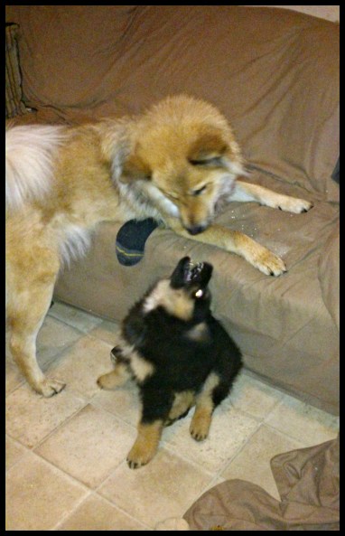 Annars fortsätter hon att vara en a-valp, sover fortfarande hela nätter och ännu inga olyckor inne :). Tindra & Jill har hur kul som helst ihop och den som tror att Jill är undergiven får nog tänka om, kolla bara här! 😉
