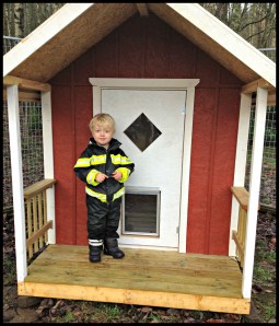 Noah kollar in nya fina hundkojan eller huset där kaninerna bor som Noah sa 🙂