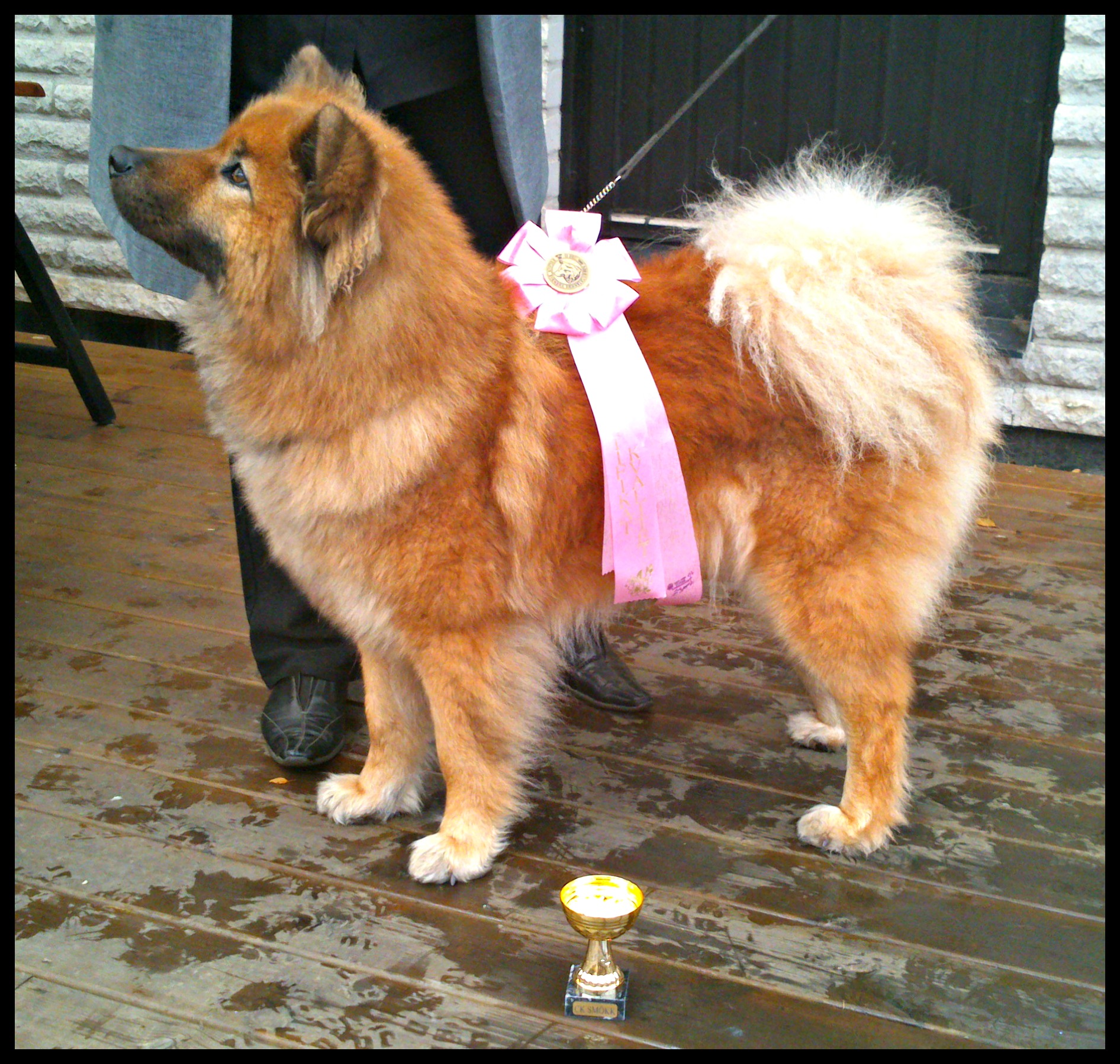 Sist men absolut inte minst vill jag skicka ett grattis till Siv & Roger som med sin söta keeshound Nappe blev BIM-valp idag på sin första officiella utställning, bra jobbat Sivan 🙂