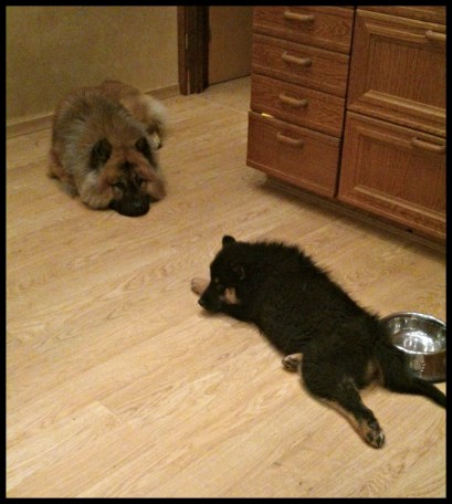 I eftermiddag hade vi som sagt finbesök av Anette & Zacco. Alla tjejer blev alldeles till sig men Zacco verkade tycka, i allafall i början, att nosa runt i vår trädgård var mer intressant ;). Men efter en stund hann han i första hand med Tindra som är den stora favoriten, Zelda passar han sig lite för pga av att hon är minst sagt ombytlig i humöret mot honom ;). Lilla Jill gjorde sitt allra bästa för att charma honom men inte ens ett krypande på golvet gjorde susen utan han tyckte mest hon var läskig :).