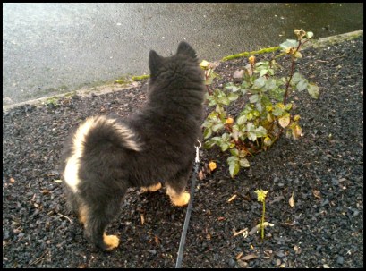 Som jag skrev i förra inlägget så hade jag lite bekymmer med vad vi skulle hitta på när Ullared inte var ett alternativ längre. Resultatet blev att jag tog med mig Jill till mitt gamla jobb i Ätran samt efteråt en liten promenad i samhället. En mycket nyttig träning då hon fick uppleva en massa nya saker som bl.a en dam med rullator, kvinna med stort paraply, och självöppnande dörrar. Hon klarade detta galant och hälsade glatt på alla, var även mycket generös och gav pussar till alla som ville ha :). Sen blev det en promenad i samhället och där fanns det mycket att upptäcka, till och med en rabatt kan vara spännande 😉