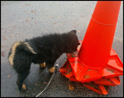 På vägen tillbaka till bilen så kom minsann Jill på en ny användning för varningskoner…. de funkar alldeles utmärkt som vattenskålar också 😉