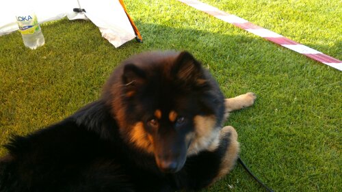 Som ni ser är det väldigt tomt än så länge men lär väl ändra sig snart ;-). Nu blir det en stunds väntan, först på Hasse som är och ställer av husvagnen hos goa vännerna Pia & Peter och sen på att bedömningen ska starta. Men det går ingen större nöd på oss. Jill ligger och kollar in läget…