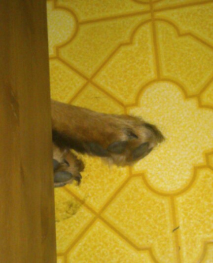 När det åskar, blixtrar och regnet öser ner utanför fönstret så kurar vi här inne i huset. Jill har intagit sin vanliga sovplats under sängen..