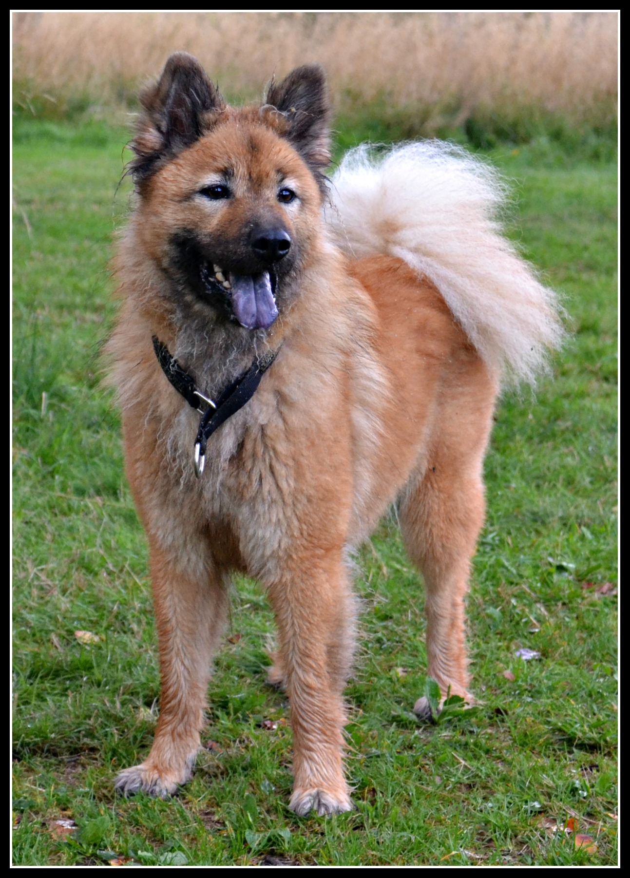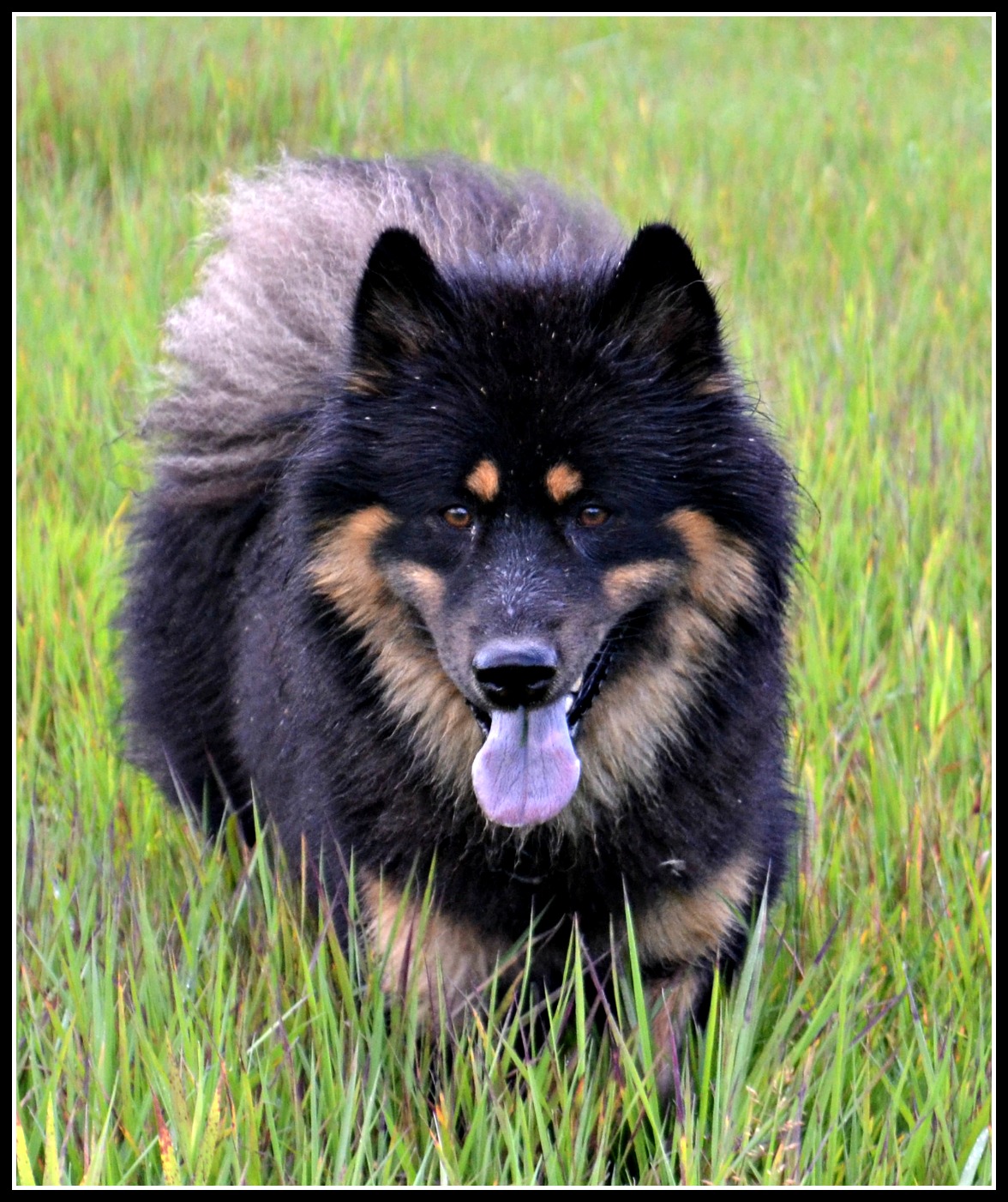 Men trots vädret så hade jag tre töser här som vankade fram och tillbaka tills jag gav med mig och tog med mig dem ner till ån för en stunds aktivitet. Och efter en liten sväng i det höga blöta gräset..