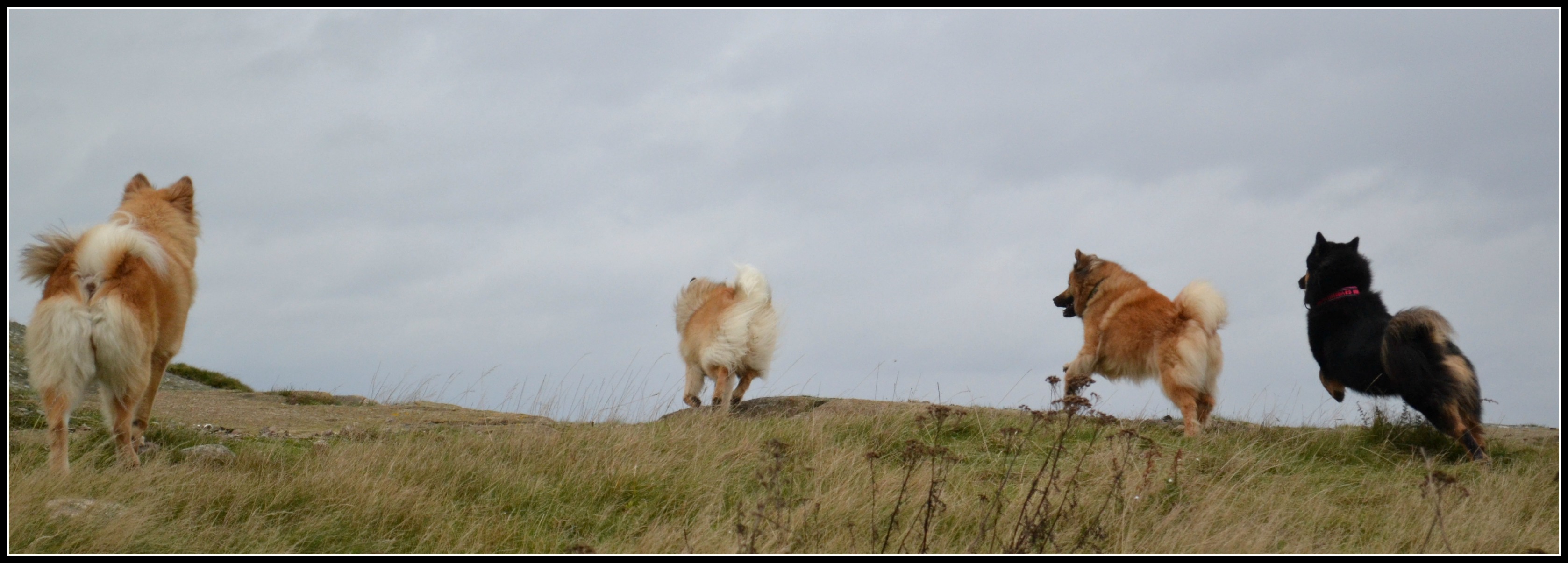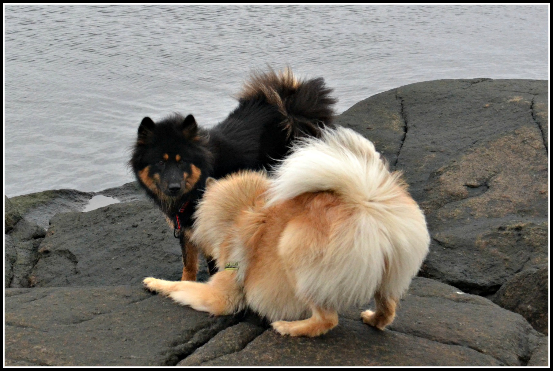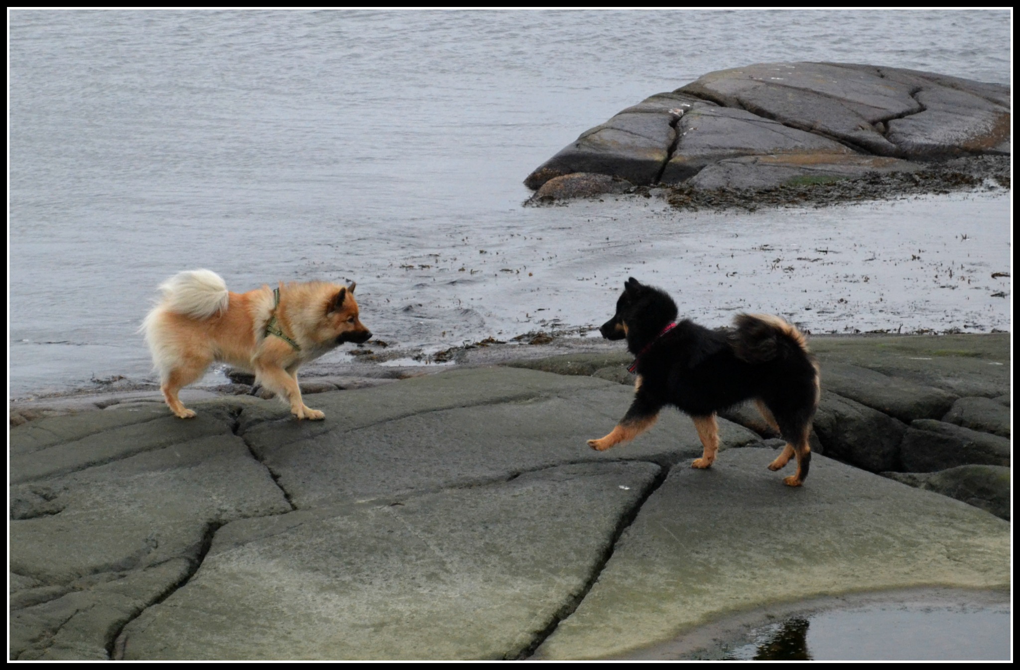 Vädret var väl inte det bästa men vad gör det i ett härligt sällskap och hundarna brydde sig inte ett dugg om vilket utan stortrivdes i friheten bland sand, sten och klippor 🙂