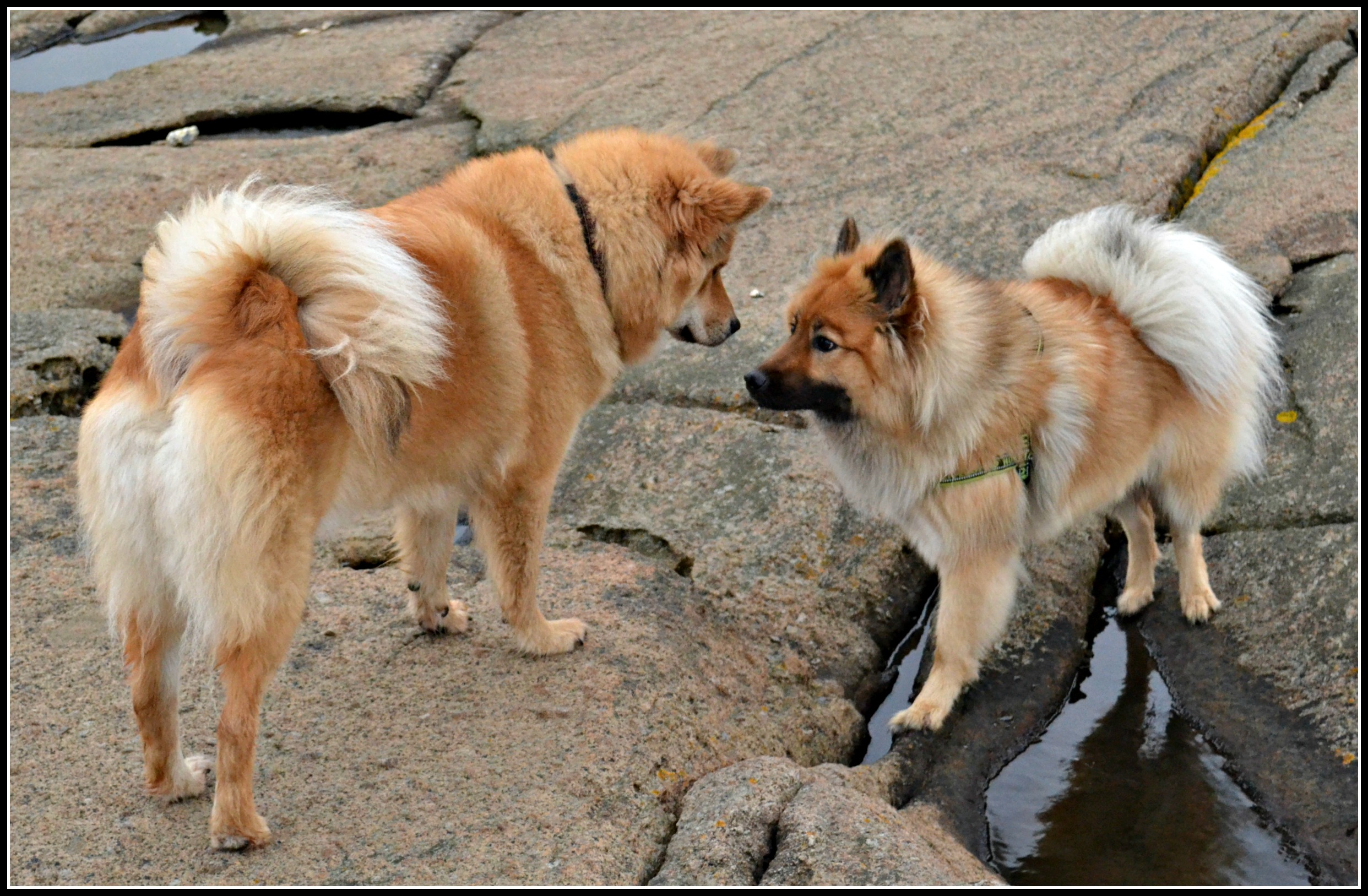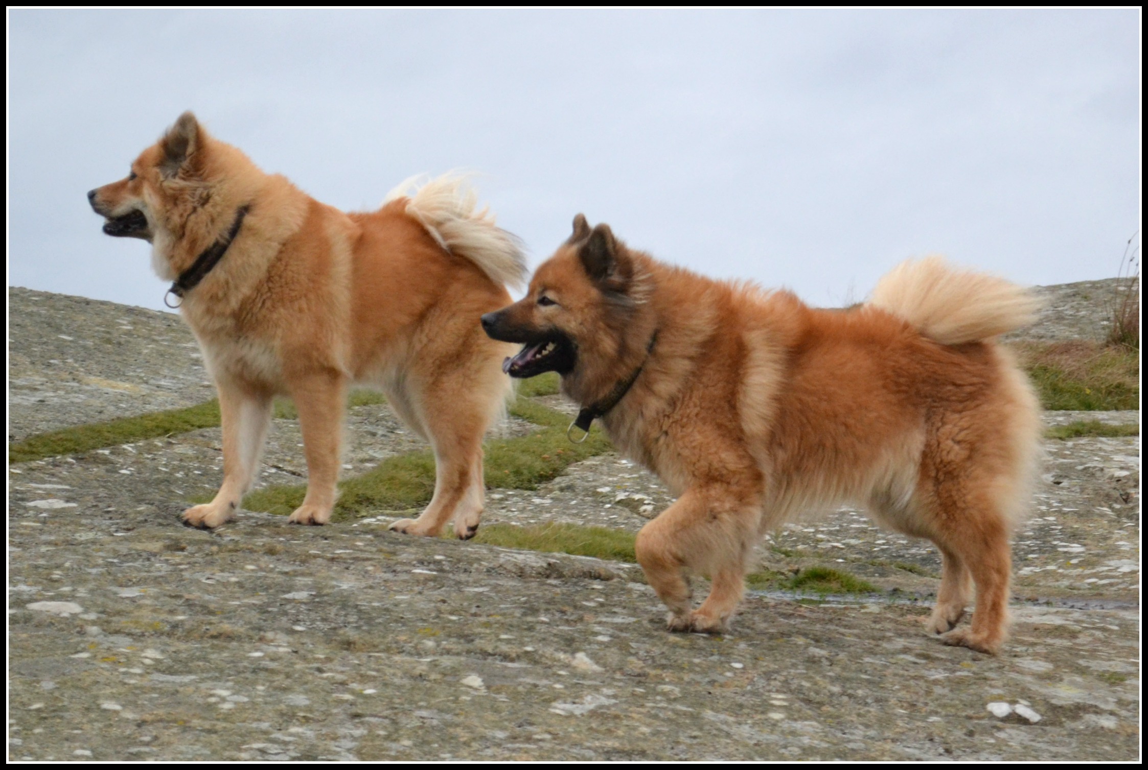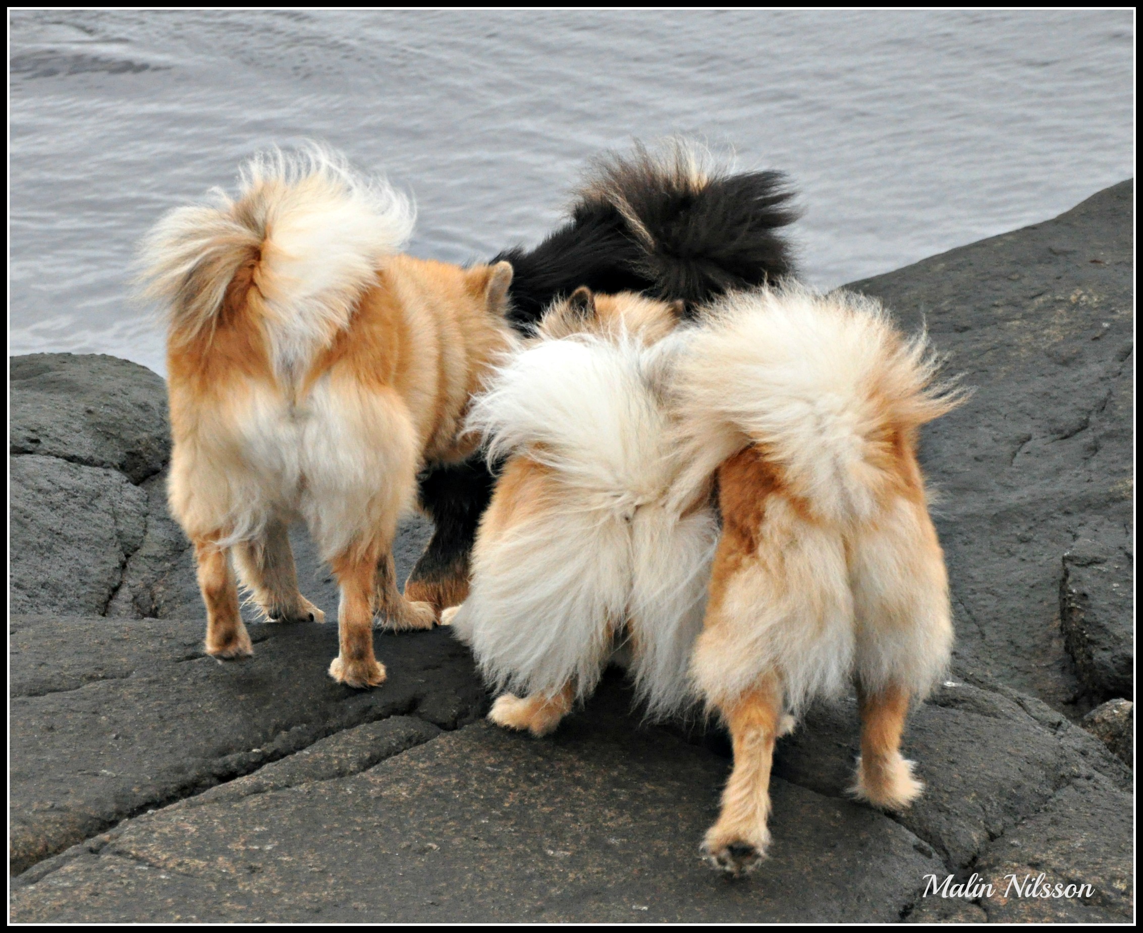 Vädret var väl inte det bästa men vad gör det i ett härligt sällskap och hundarna brydde sig inte ett dugg om vilket utan stortrivdes i friheten bland sand, sten och klippor 🙂