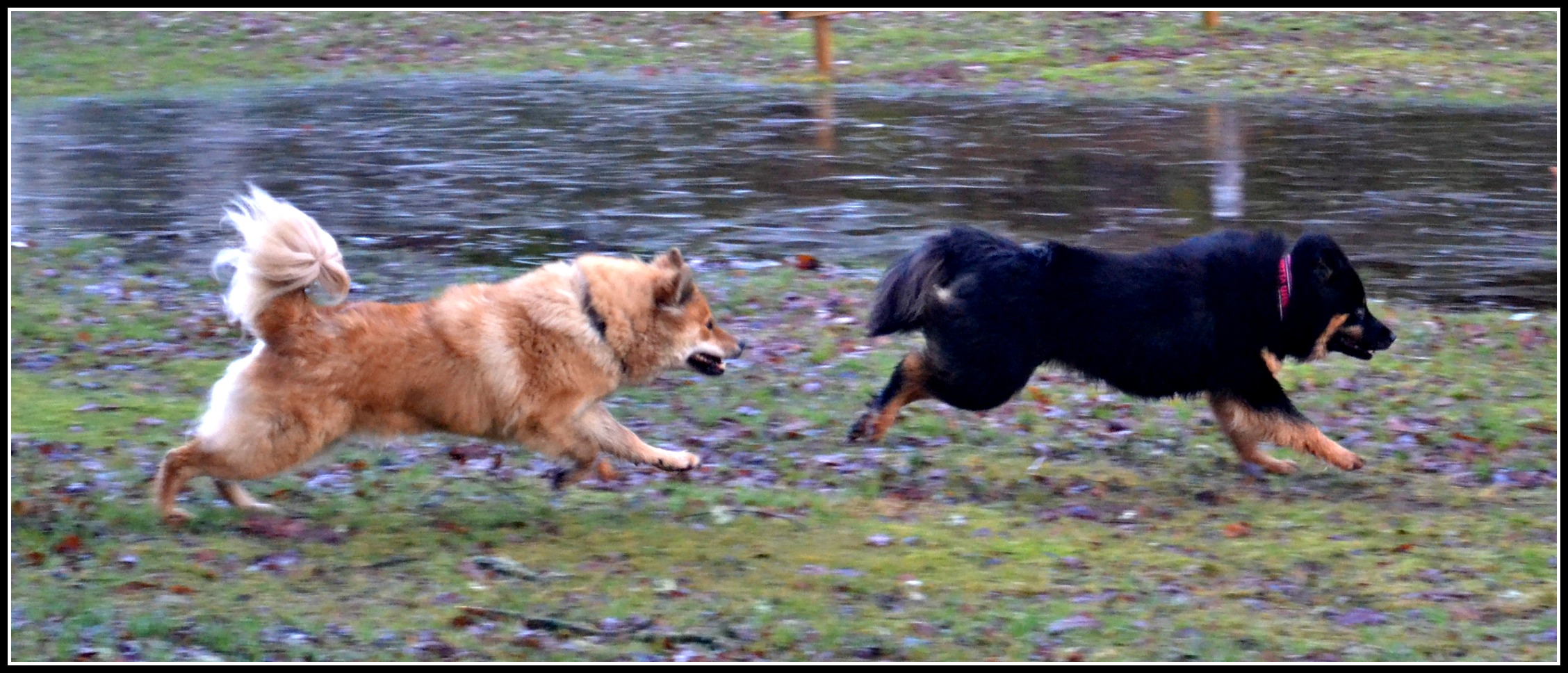 ..men inte alls i den omfattning som det brukar vara, kanske jobbigare än vad man kan tro med ett besök hos veterinären? Inte ens en kastad pinne i sjön kunde locka Jill denna dag utan hon stod bara och tittade på nåt helt annat istället 😉