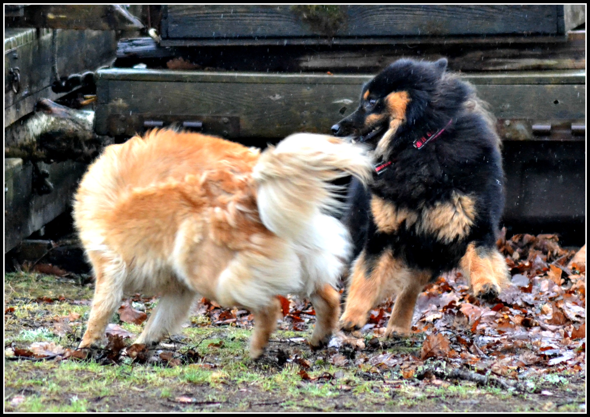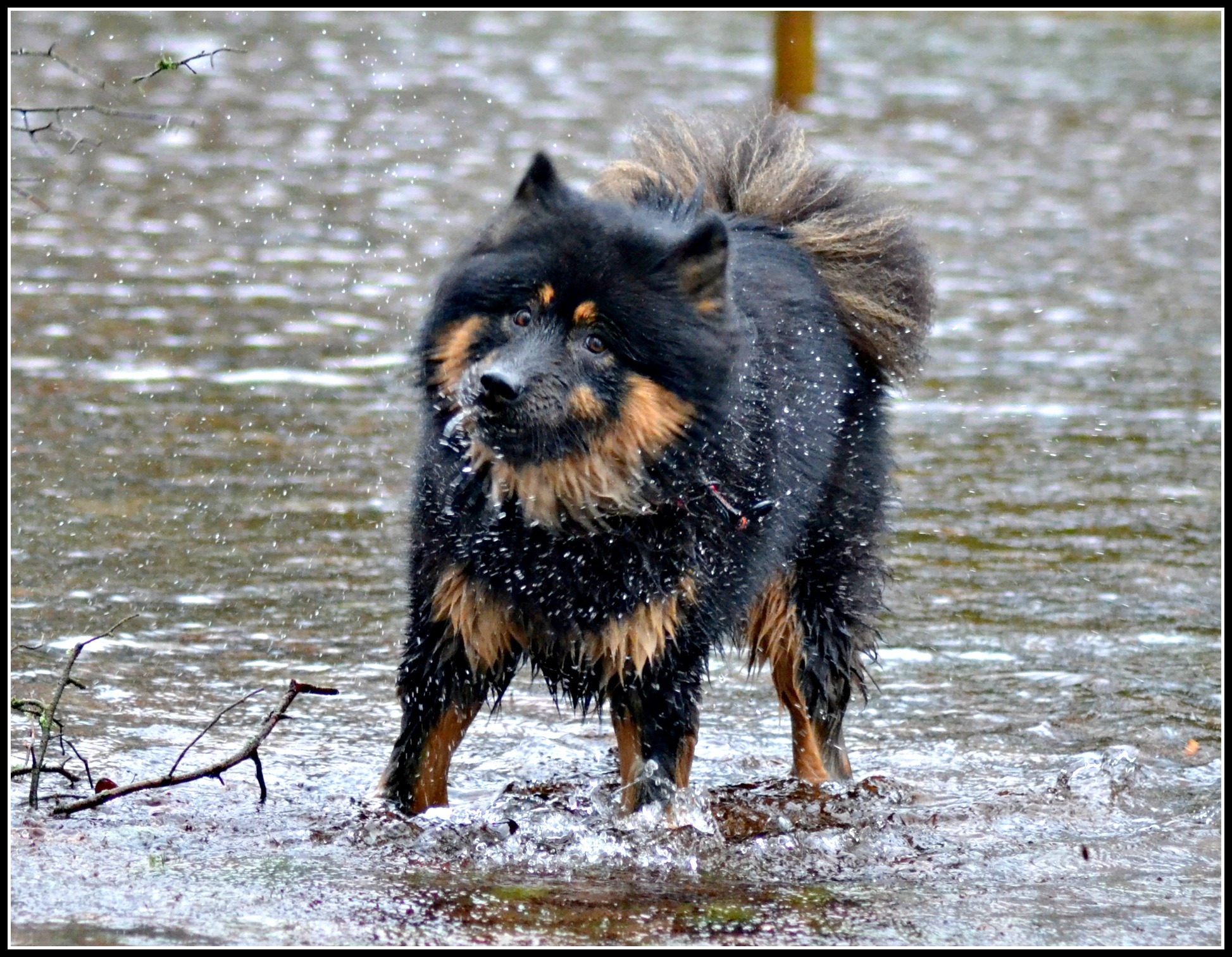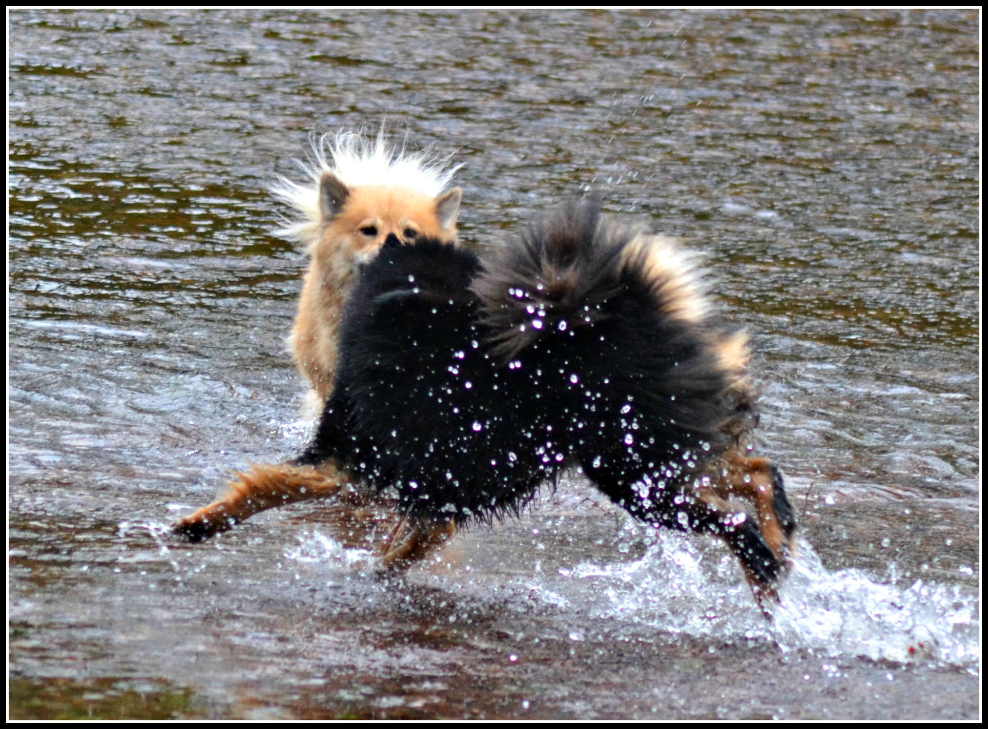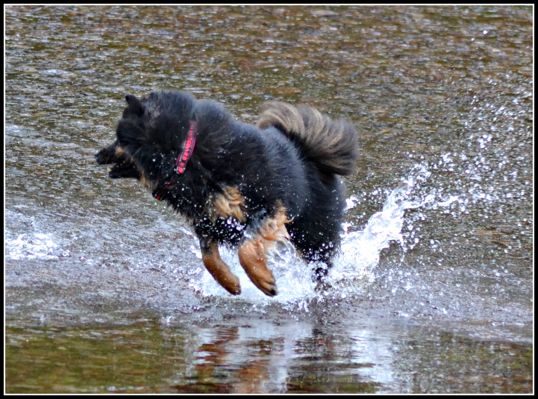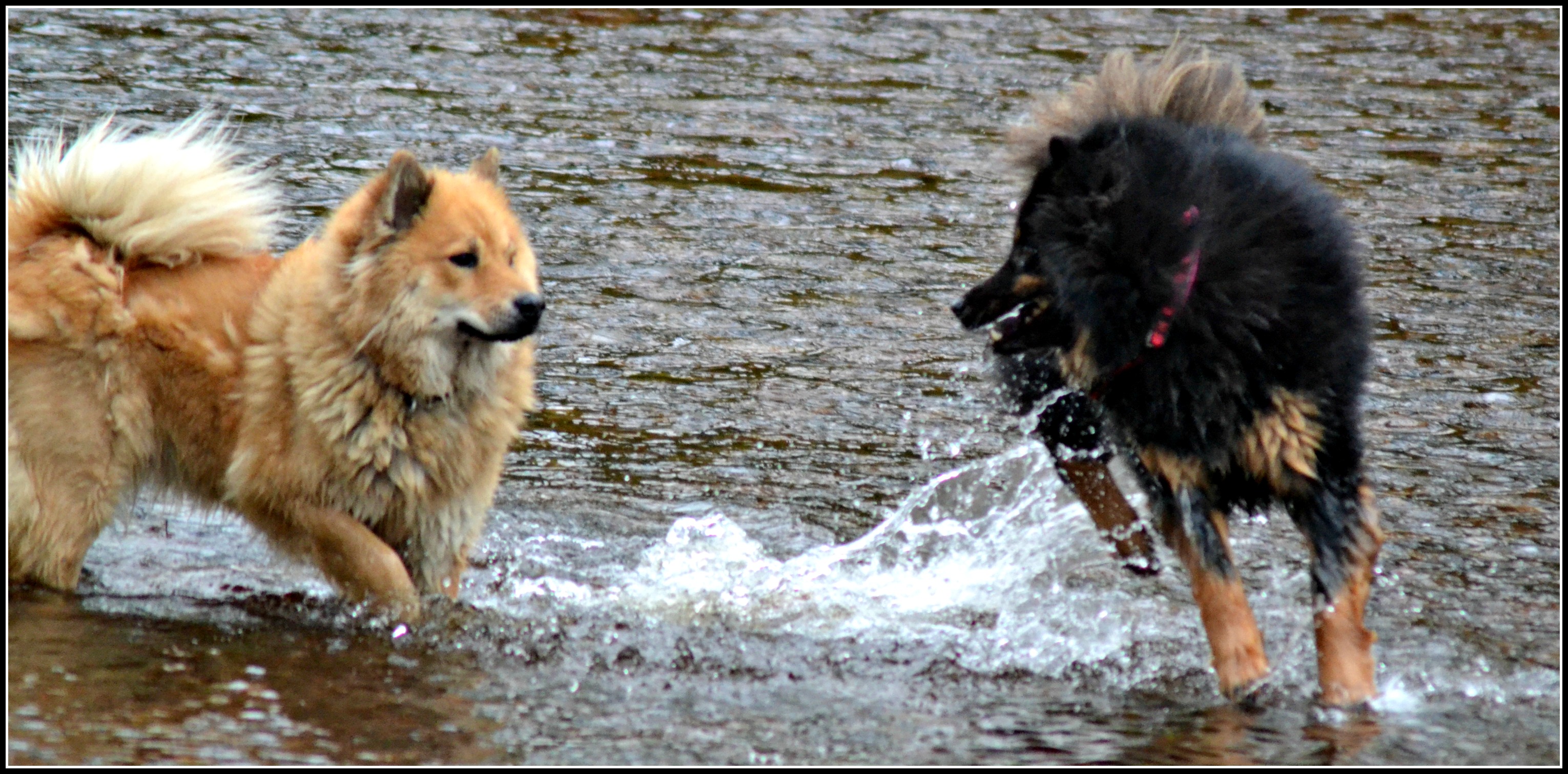 Nähä, det gav ingen större effekt, Tindra var inte så pigg på att busa i vattnet trots att retstickan Jill studsade runt men på land, ja då är det en helt annan sak 😉