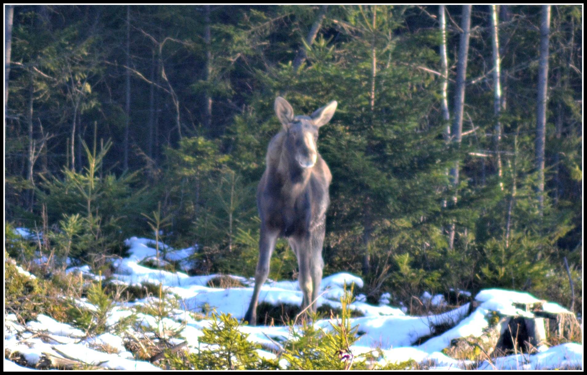 Japp, som synes en älg, något av det roligaste som finns enligt Zelda, dock inte enligt hennes matte så lika bra att köra med säkra kort här vilket som sagt innebar koppel på ;).