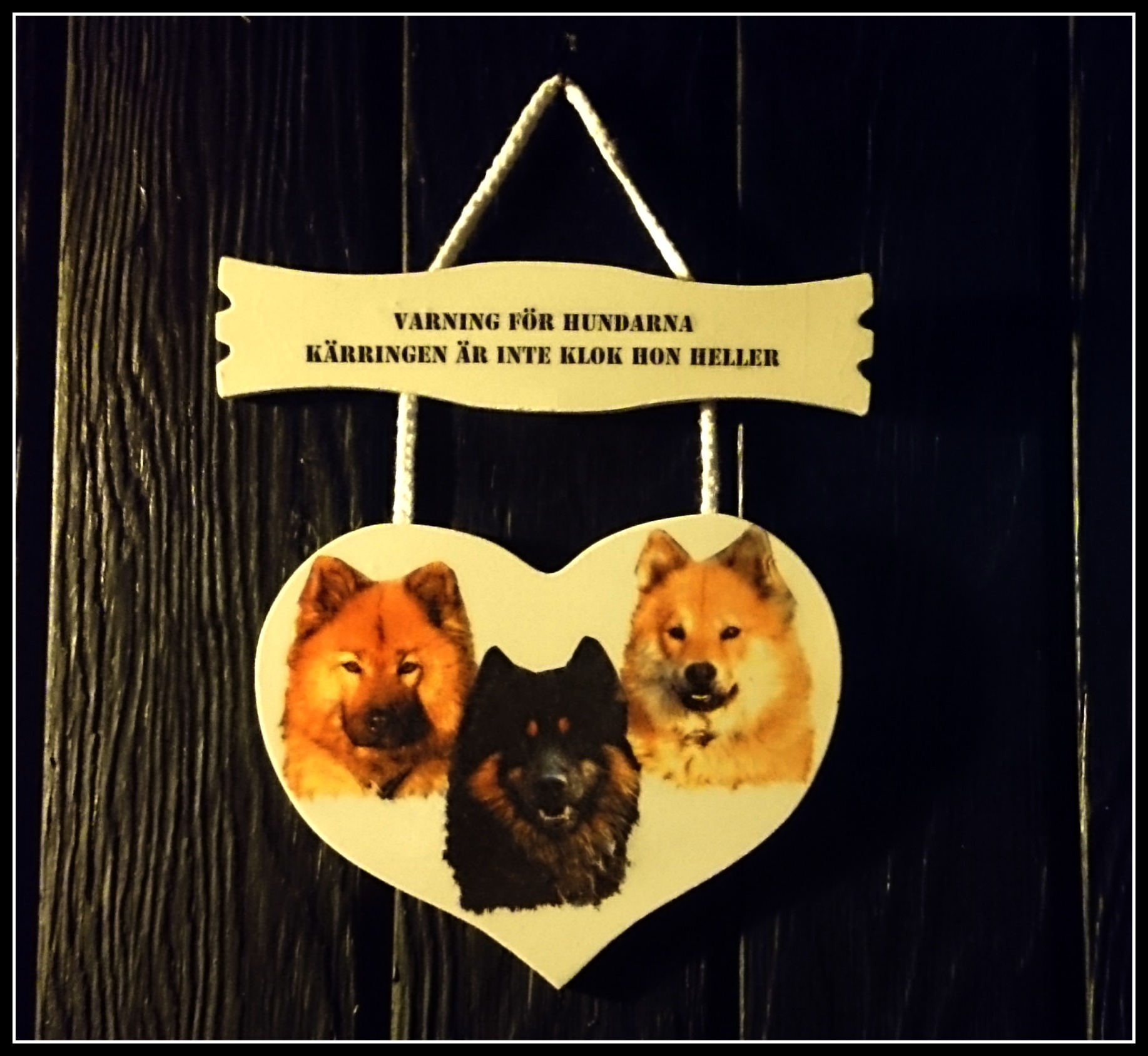 Nu så är äntligen skylten på plats på ytterdörren som Susanne på Kitune´s kennel gjort och den är så häftig, ja speciellt andra raden på texten om ni frågar gubben min, så sann så enligt honom 😉