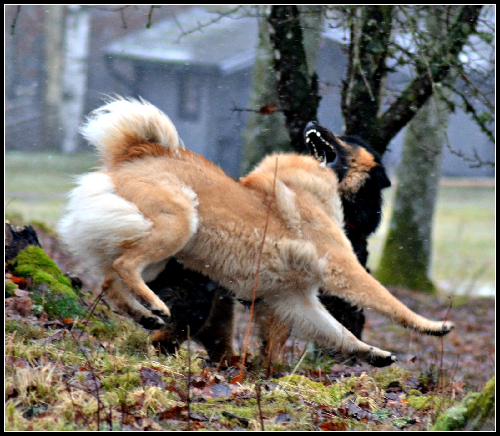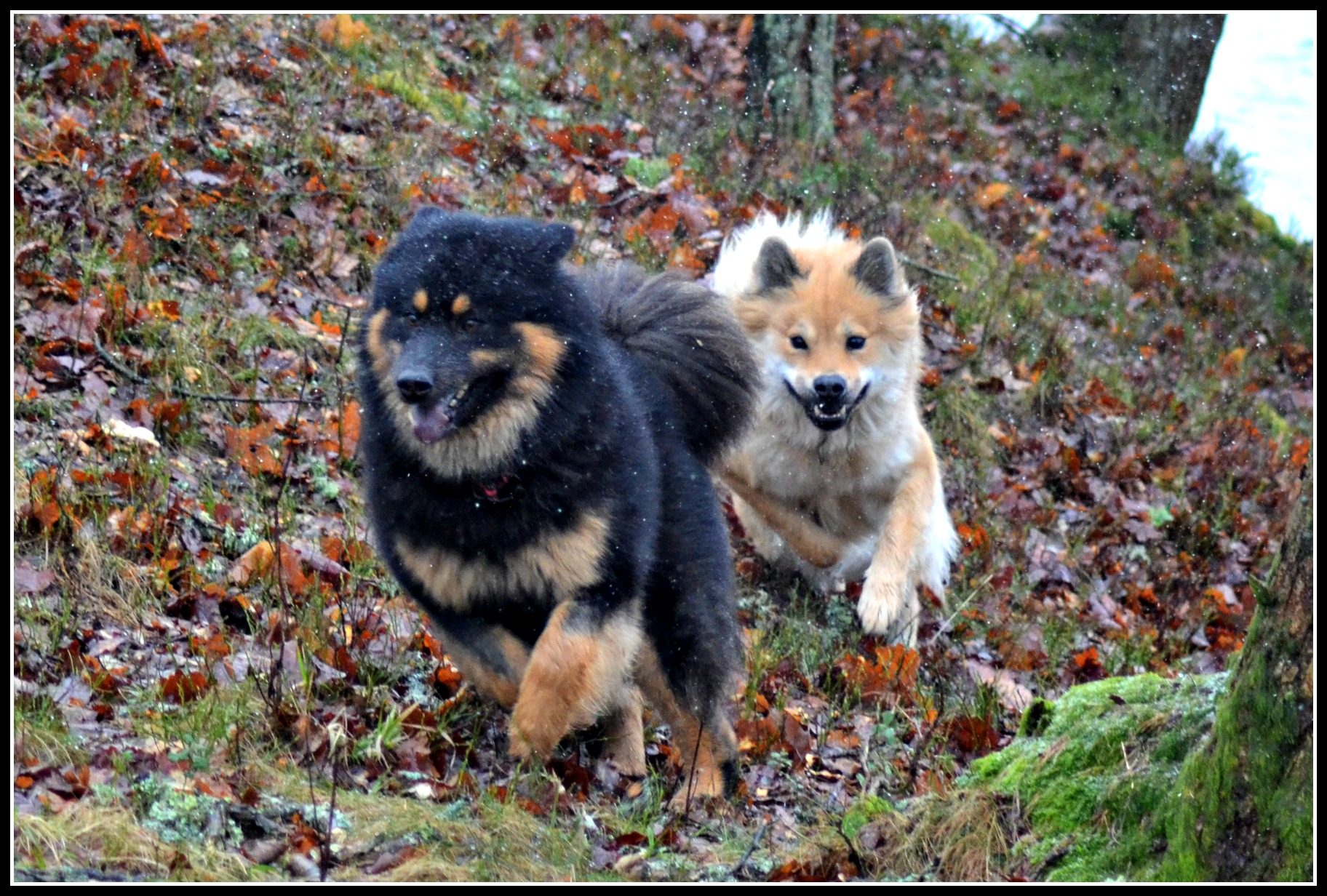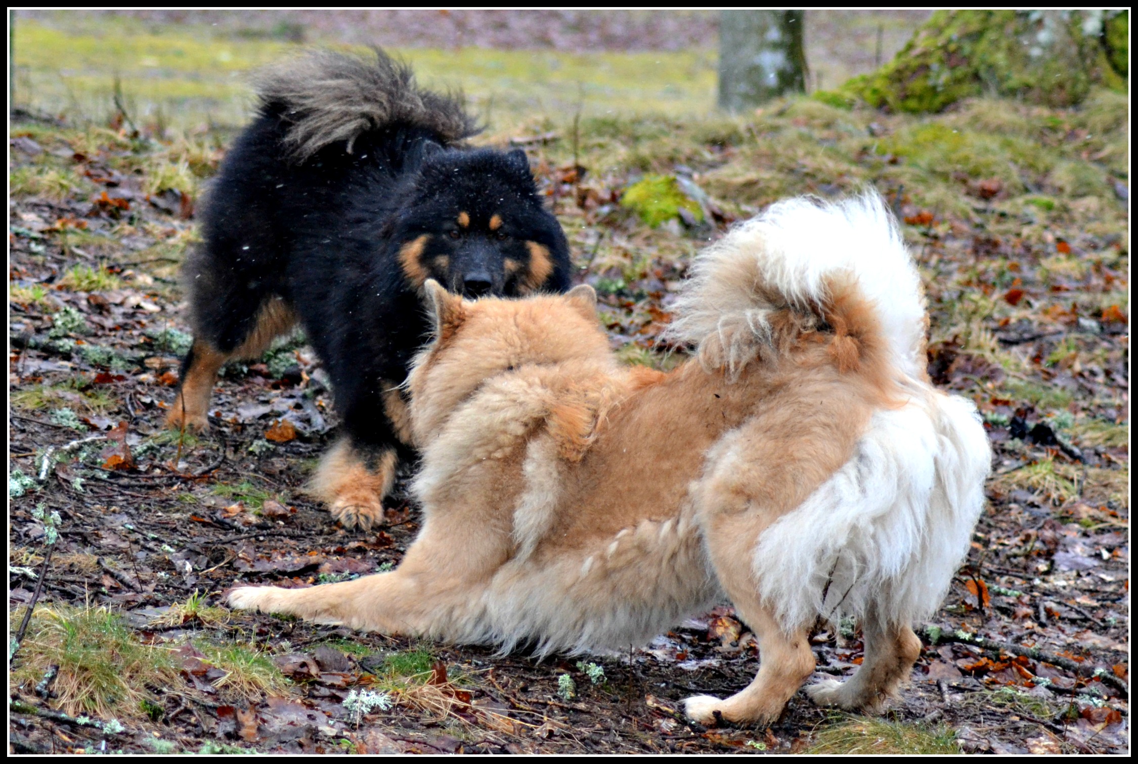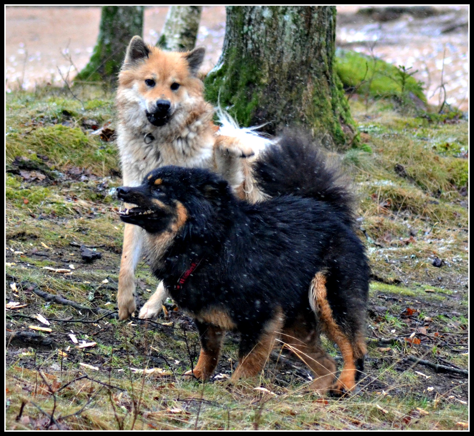 En ledig dag idag även om man skulle kunna tro tvärtom eftersom det inte kommer ett inlägg förrän nu ;). Men det har jag iallafall varit och pysslat med lite ditt och datt samt rastat tjejerna i snöfallet. Inget direkt lockande väder precis idag heller men men… Ut måste de ju och även idag blev det stranden som i efterhand vad ett dåligt val på grund av blåsten men det var bara att gilla läget, dra på sig möpsen och promenera på¨:). Tjejerna var iallafall nöjda och Tindra & Jill var inte sena att sätta igång med sin vanliga lek… 😉